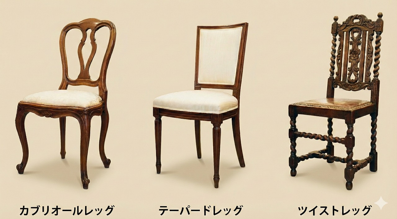 アンティークテーブルの様式を理解すると、空間との調和を考えた選択ができるようになります。主要な様式の特徴をご紹介します。