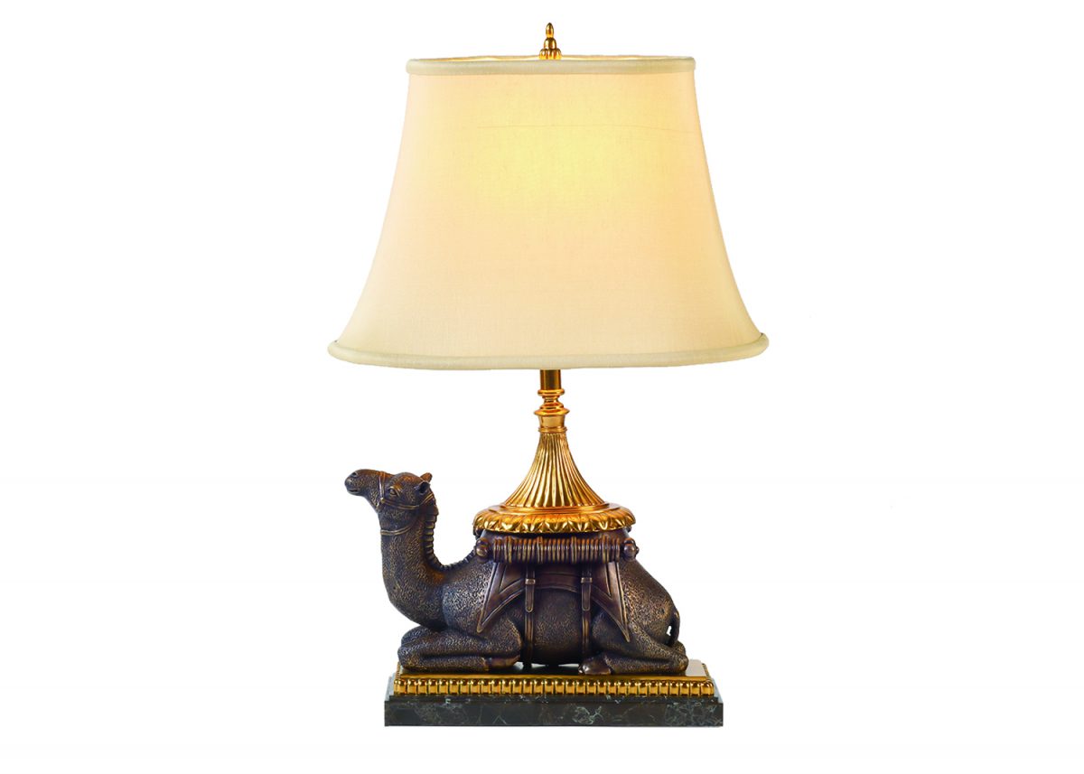 レザー製のブックの上で、モンキーが尾でペンシェル製のランタンを掲げているデザイン。遊び心と職人技が融合した、メートランドスミスの代表作のひとつです。造形的にもユニークなこのランプは、オブジェとしても楽しめ、ゲストとの会話のきっかけにもなります。