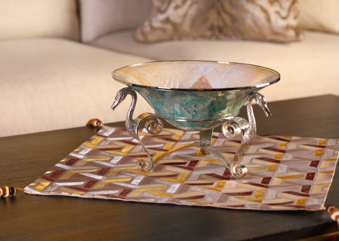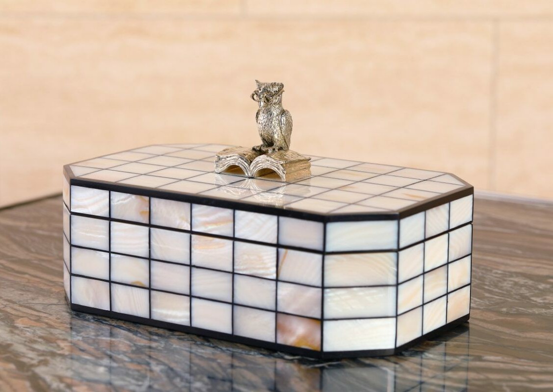 熟練の職人が手がける象嵌細工は、異なる素材を精緻に嵌め込む高度な伝統技法です。木材、金属、貝殻を組み合わせた複雑なパターンは、何世代にもわたって受け継がれてきた技の結晶。テーブルの天板に施された繊細な幾何学模様は、見る角度によって異なる表情を見せ、日常のなかに小さな発見の喜びをもたらします。