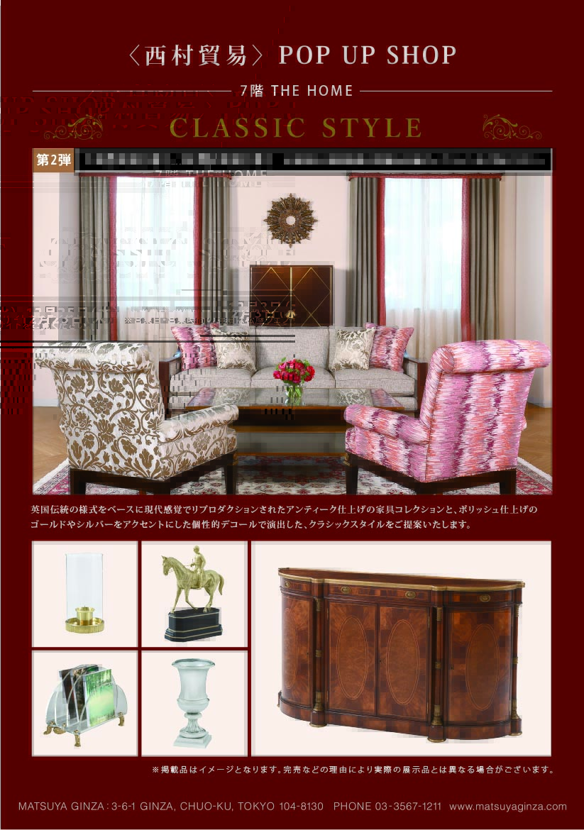 英国伝統の様式をベースに現代感覚でリプロダクションされたアンティーク仕上げの家具コレクションとポリッシュ仕上げのゴールドやシルバーをアクセントにした個性的デコールで演出した、クラシックスタイルをご提案いたします。